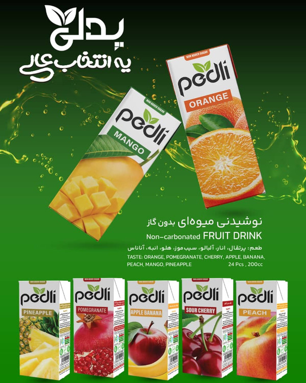 آبمیوه پاکتی پدلی در ۵ طعم تعداد در کارتن ۳۶ عددی